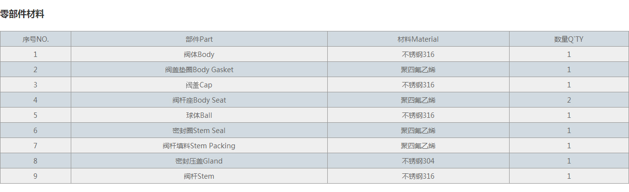 4 | 閥桿座Body Seat | 聚四氟乙烯 | 2 |