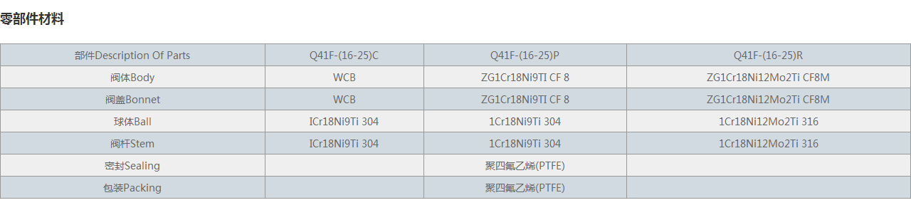 部件Description Of Parts | Q41F-(16-25)C | Q41F-(16-25)P | Q41F-(16-25)R |