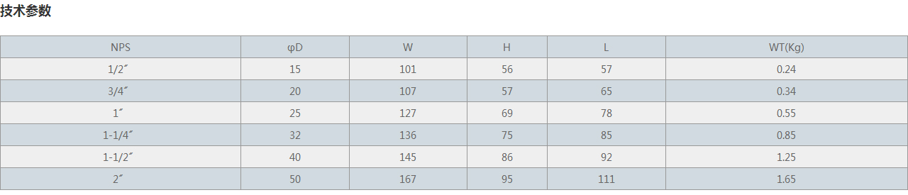 NPS | φD | W | H | L | WT(Kg) |