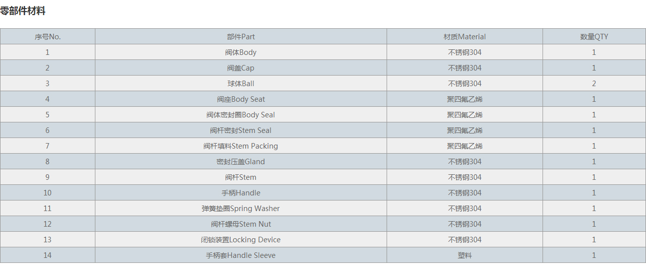 序號(hào)No. | 部件Part | 材質(zhì)Material | 數(shù)量QTY |