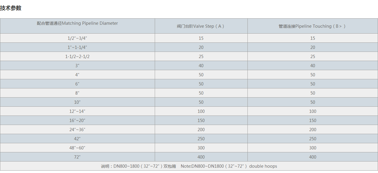 說明:DN800~1800(32″~72″)雙包箍 Note:DN800~DN1800(32″~72″) double hoops |