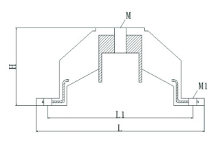 JGD型橡膠剪切隔振器是由內(nèi)、外鋼套和中間的合成橡膠組成,經(jīng)硫化呈中空?qǐng)A錐體,橡膠部份受剪切力,具有較大的變形范圍和較低的固有頻率。工作溫度范圍在-15℃-+80℃。溫度變化時(shí),剛度也有所變化:阻尼比C/C。≥0.07。對(duì)于水泵、壓縮機(jī)、通風(fēng)機(jī)、發(fā)電機(jī)組、冷凍機(jī)等機(jī)械設(shè)備的積極隔振和儀器儀表的消極隔振都有良好的隔振效果。