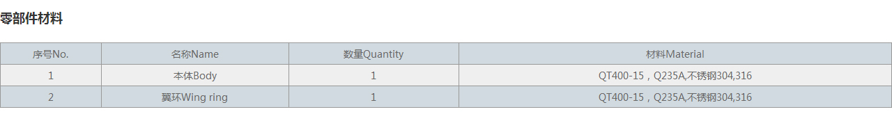 2 | 翼環(huán)Wing ring | 1 | QT400-15,Q235A,不銹鋼304,316 |
