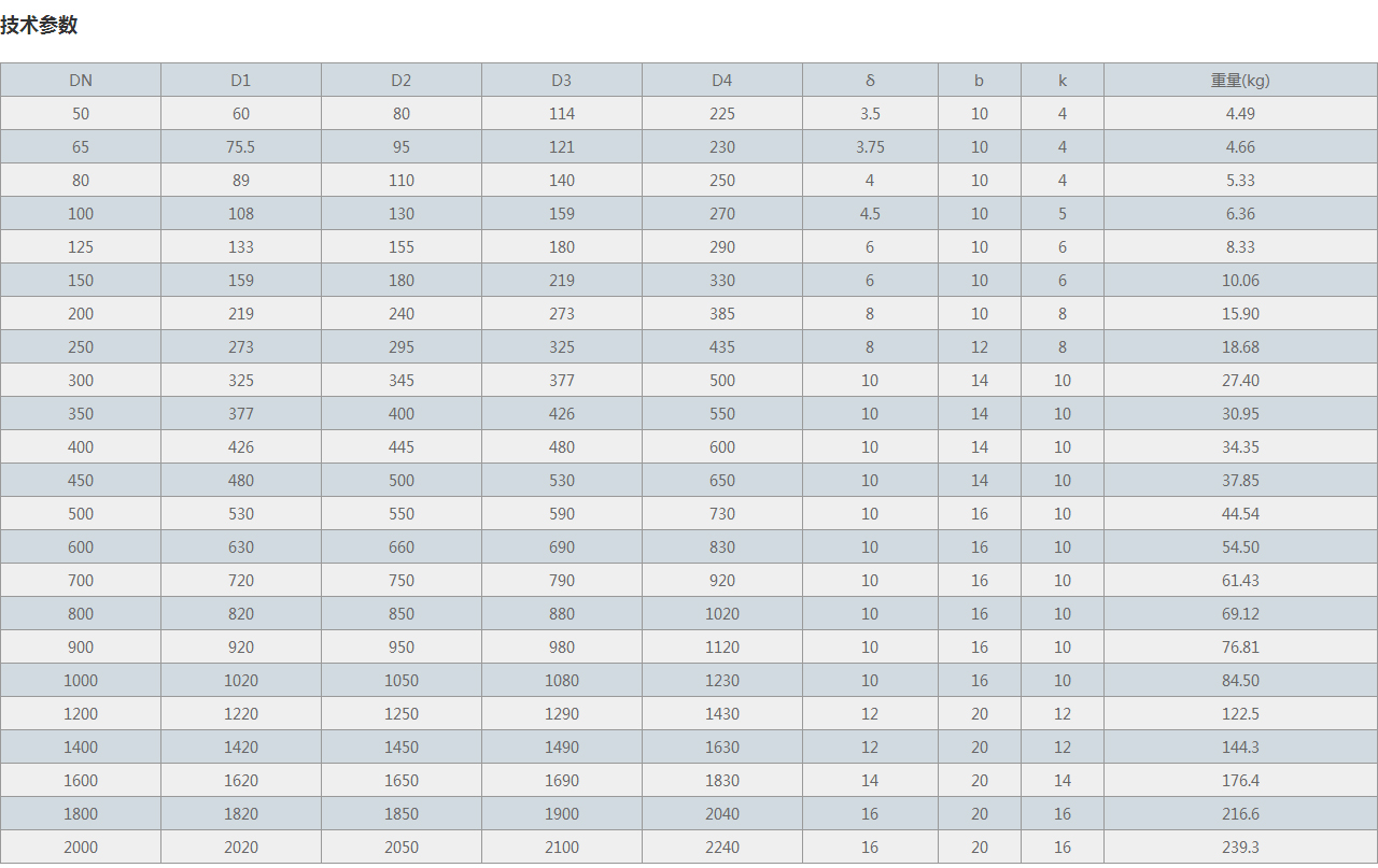 DN | D1 | D2 | D3 | D4 | δ | b | k | 重量(kg) |