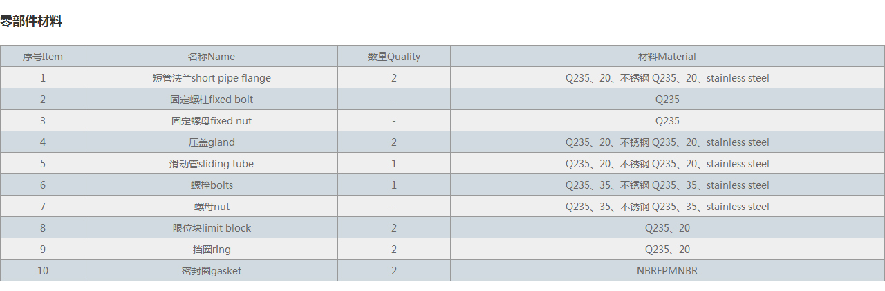 5 | 滑動管sliding tube | 1 | Q235、20、不銹鋼 Q235、20、stainless steel |