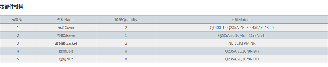 4 | 螺柱Bolt | n | Q235A 、25 、1Cr18Ni9Ti |